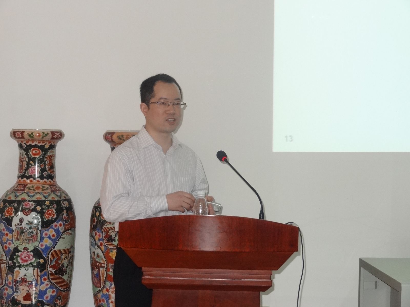 开幕式之后,武汉大学李振教授主讲作首场学术报告。副校级督导员张海良教授主持学术报告。李振教授本次讲座的题目是:“Aggergation-Induced Emission Materials: the Art of Conjuation and Rotation”,主要介绍了有机光电材料方面的专业知识和相关应用。(照片由徐超提供)