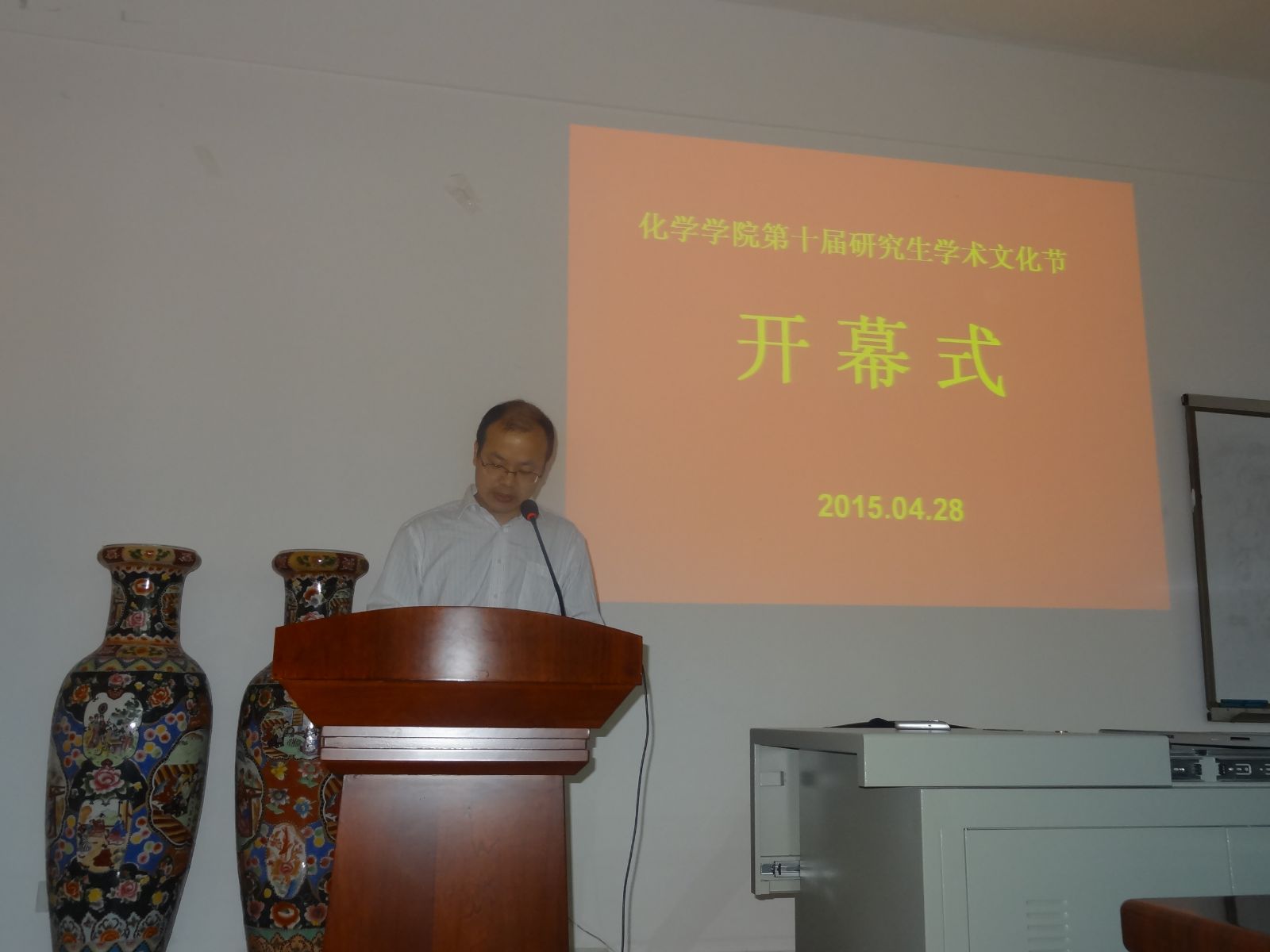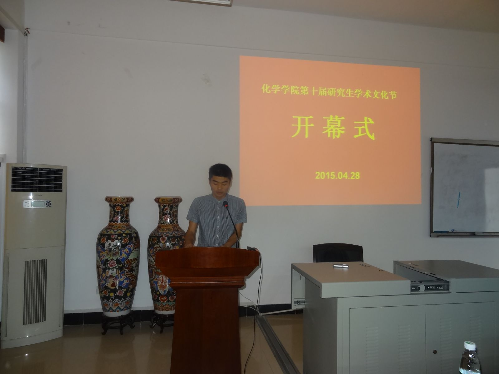 4月28日上午,伟德BETVLCTOR第十届研究生学术文化节在化学化工大楼A-417举行了开幕式。开幕式由伟德BETVLCTOR党委书记刘稳丰主持,伟德BETVLCTOR院长邓国军教授致开幕辞,副校级督导员张海良、研究生院院长朱卫国、伟德BETVLCTOR副院长费俊出席,部分教师及研究生参加开幕式并听取报告。