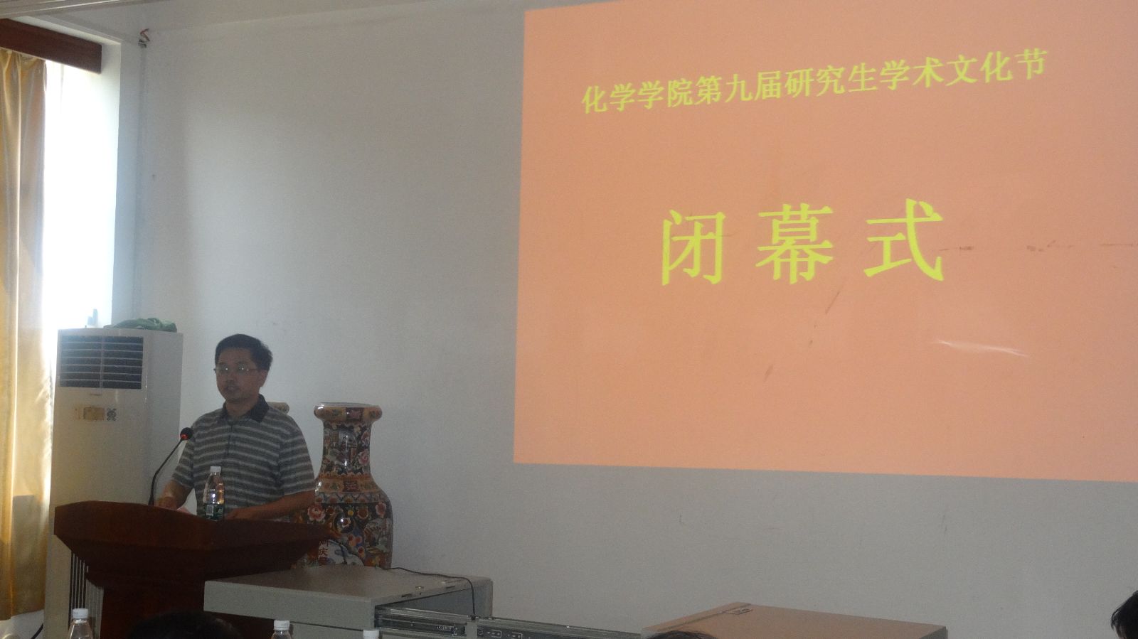 6月12日上午,在中南大学王建秀教授讲座之后,伟德BETVLCTOR举行第九届研究生学术文化节闭幕式。邓国军院长主持闭幕式,院研究生分会主席张海隆总结本届研究生学术文节开展的活动情况,院党委书记刘稳丰致闭幕词。
