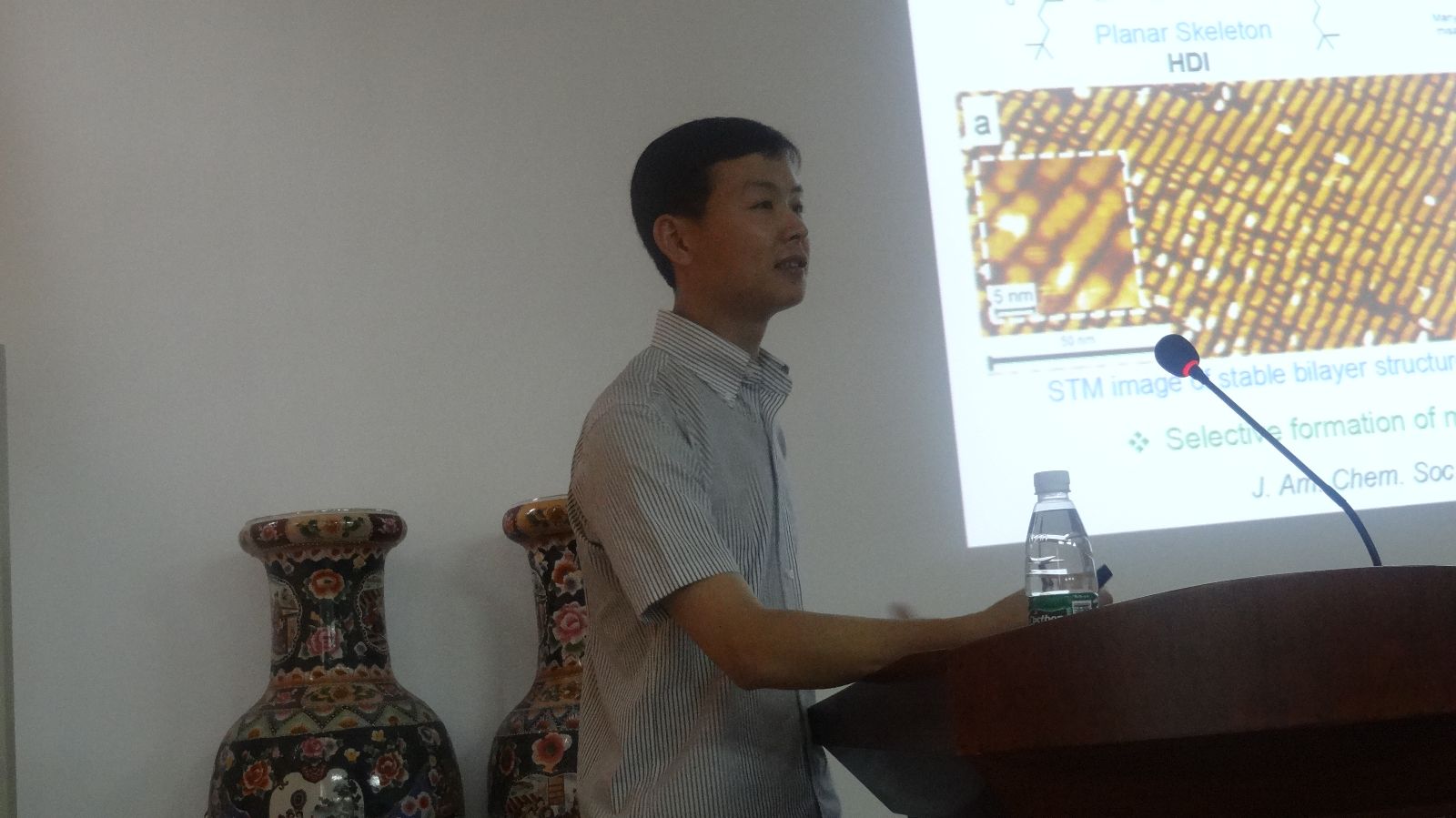 陈龙博士以“Design and Synthesis of Functional Supramolecular and Macromolecular Nano-Architectures”为题,重点介绍了有机盘状分子、近红外染料、多孔大分子材料以及石墨烯纳米带等自组装单元的设计、合成及其在有机光伏、有机场效应晶体管、有机催化等研究领域的应用。陈龙博士的报告使在座的科研人员和同学受益匪浅,为伟德BETVLCTOR从事有机光电和纳米材料研究的教师和同学提供了很多新的思路。随后,陈龙博士与伟德BETVLCTOR的科研人员和同学进行了深入的学术交流。