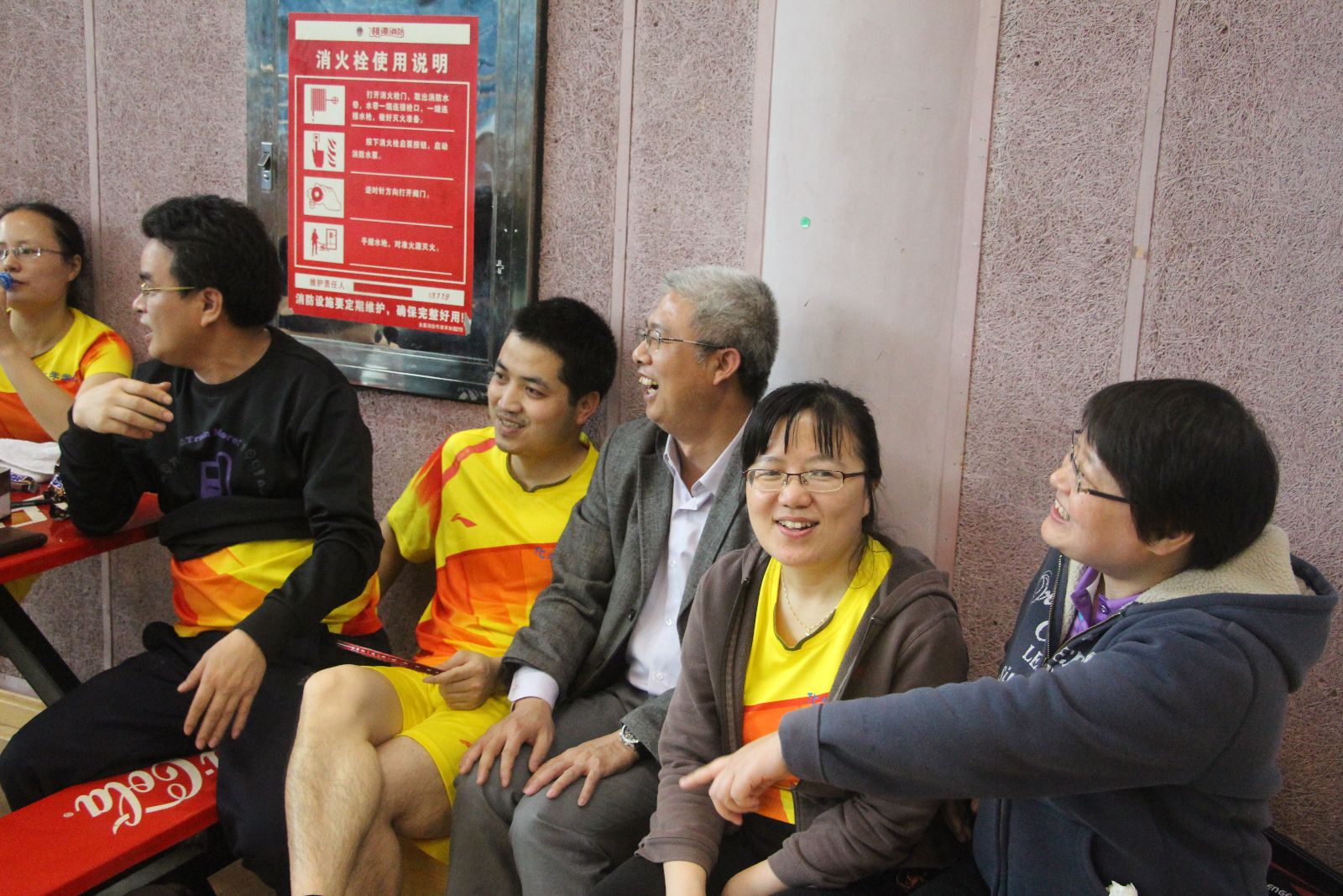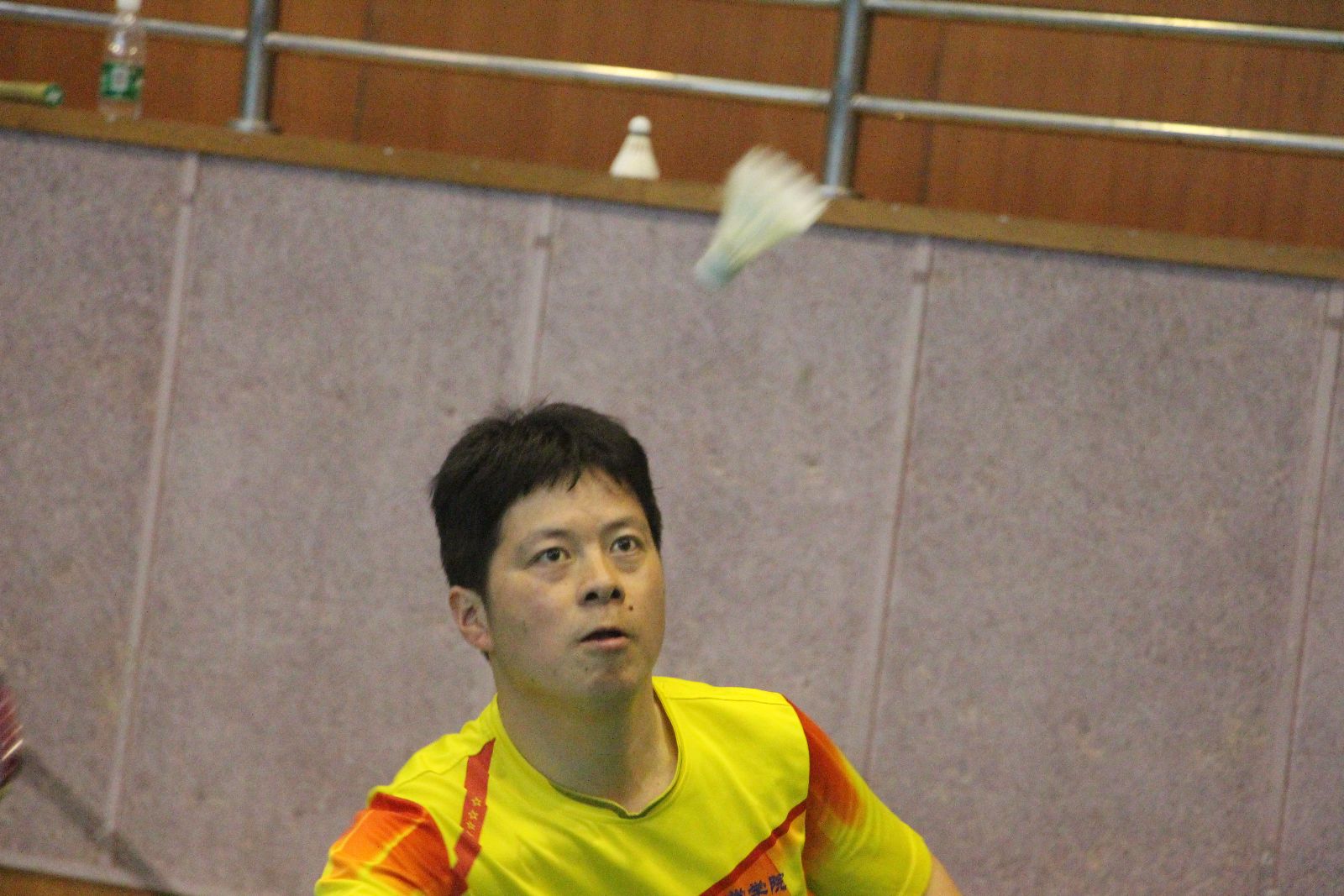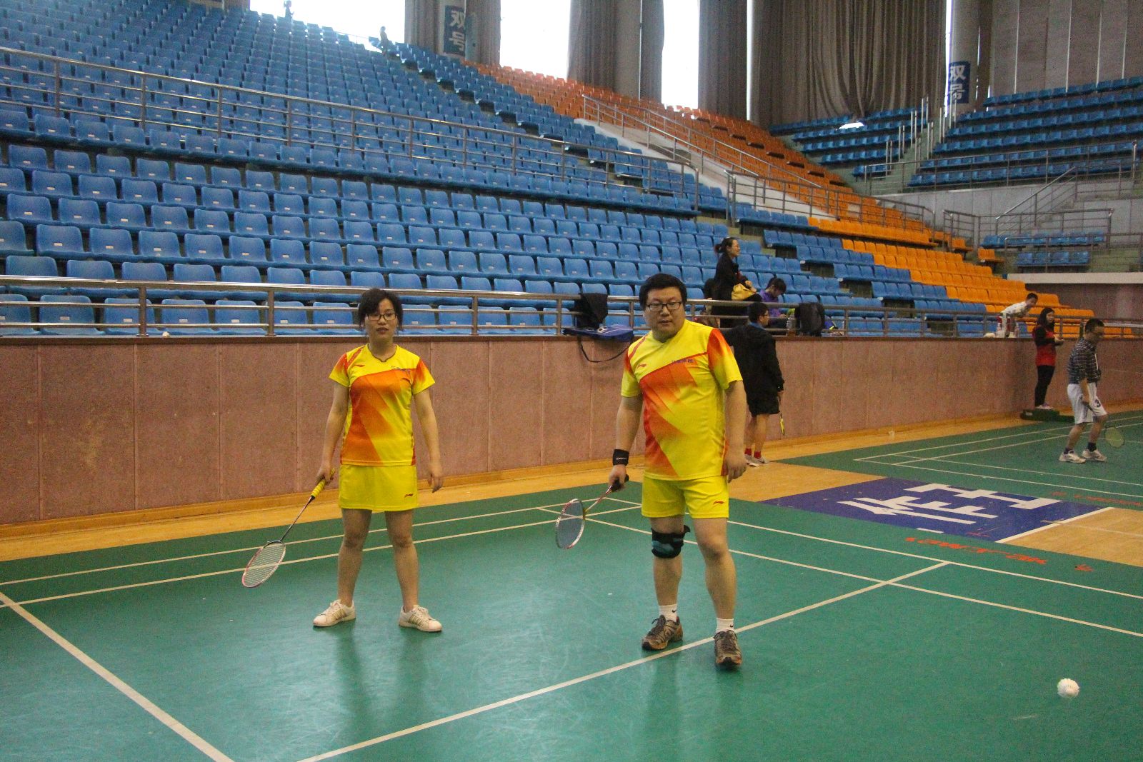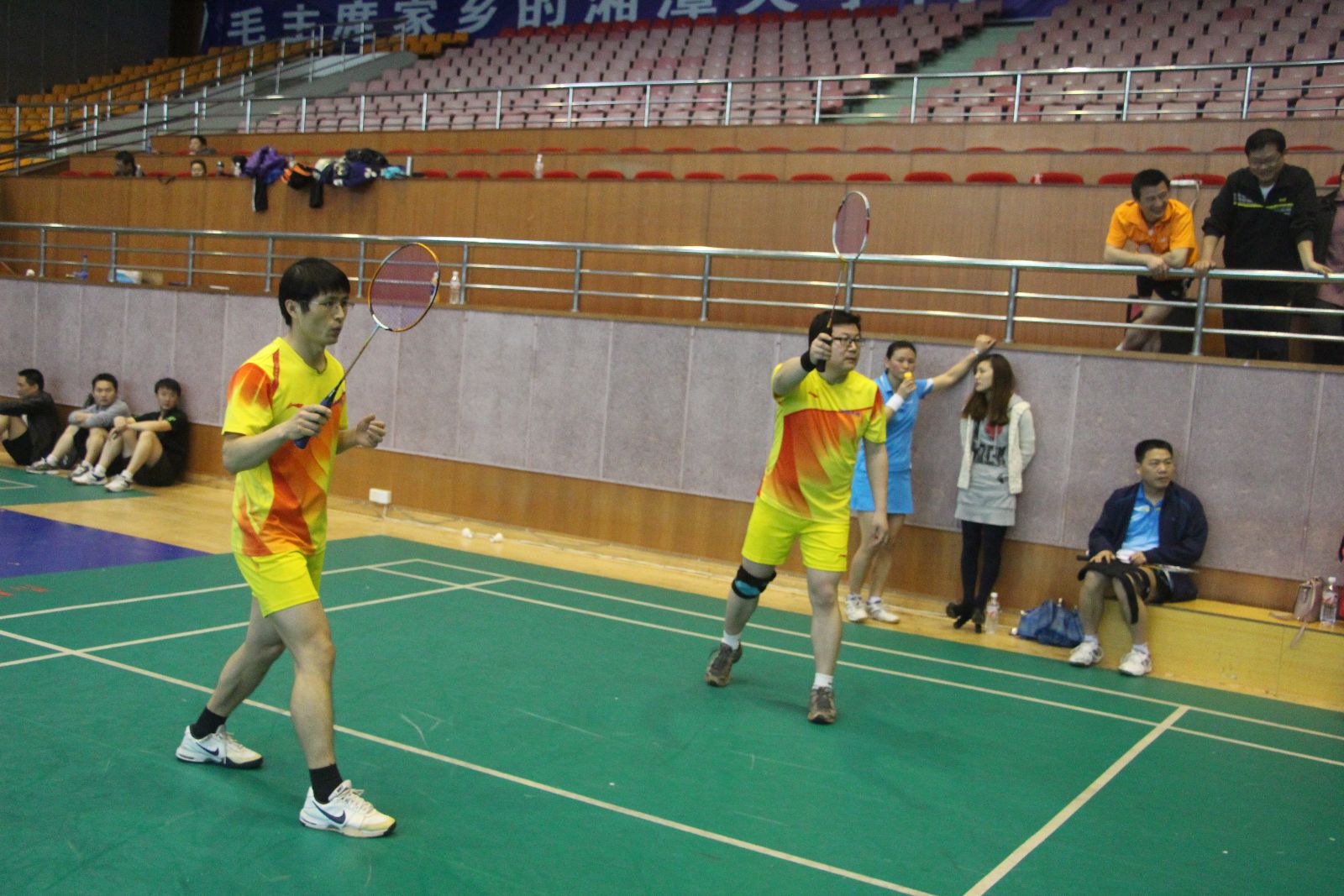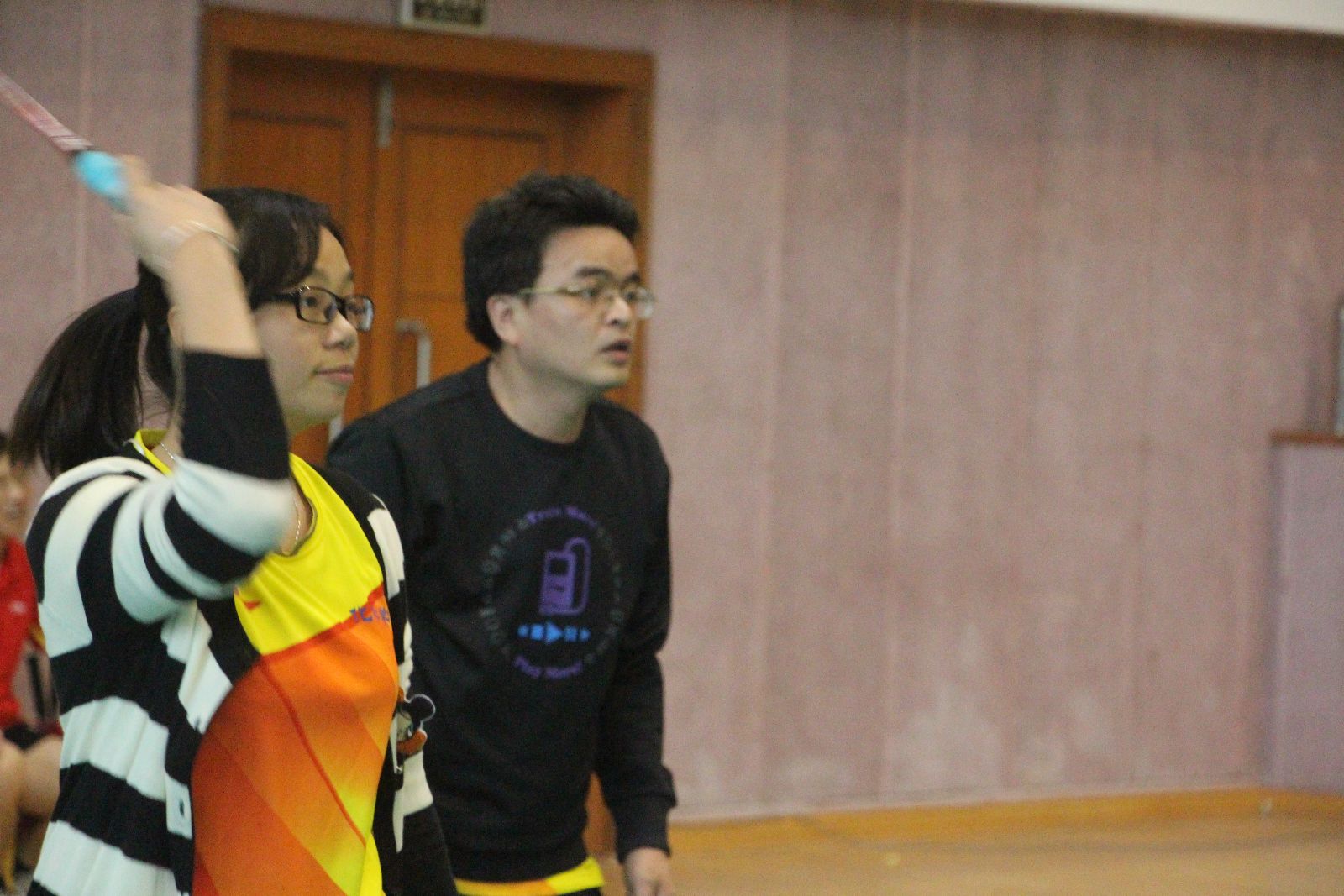 本次比赛项目设两对男双、两对混双,其中一对混双必须是由一名院领导和该学院另一异性教师组成。每场比赛采取三局两胜制,率先得到15分的一方赢得当局比赛。有院领导参加的那对混双单循环赛之后确定名次,其他三对双打循环赛之后按得分取团体名次,得分相同按小分计算。团体赛和院领导个人比赛均设一等奖一名、二等奖一名,其余为三等奖。
