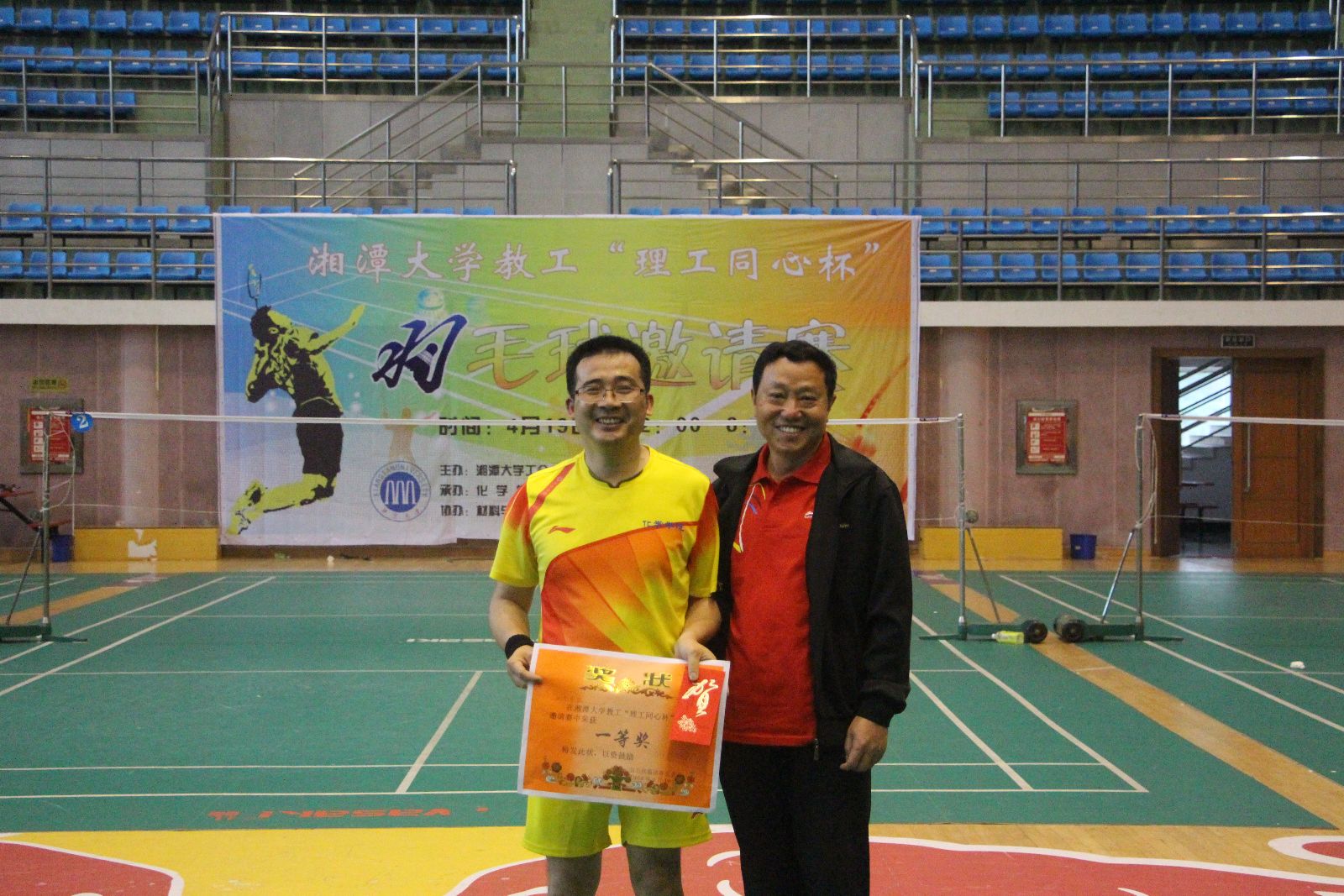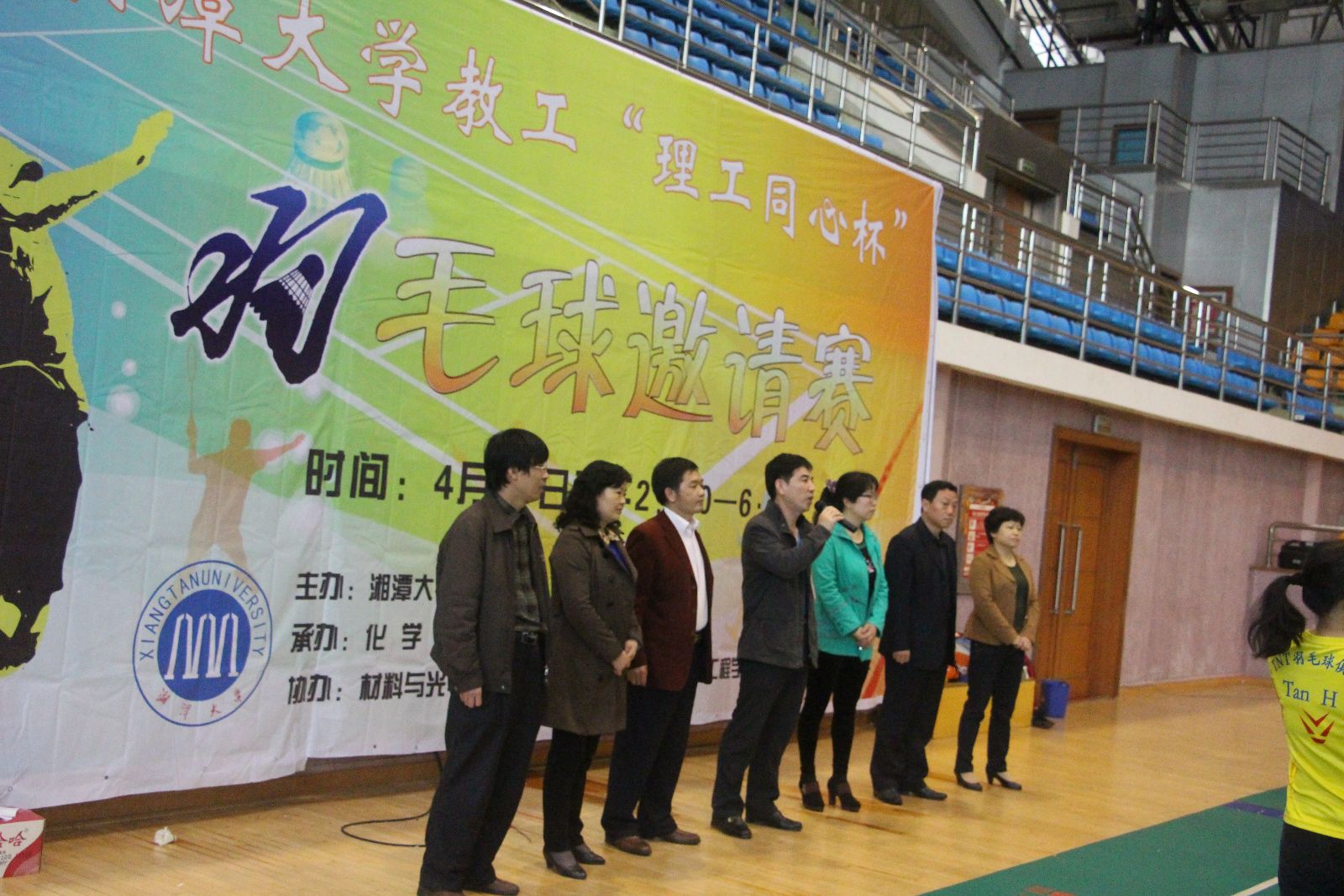 4月19日,由伟德BETVLCTOR发起并承办的伟德BETVLCTOR教工“理工同心杯”羽毛球邀请赛在校体育馆举行。来自材料与光电物理学院、机械工程学院、信息工程学院、土木工程与力学学院和伟德BETVLCTOR的教工羽毛球爱好者同堂切磋球技。副校长、校工会主席戴飞军出席开幕式并讲话,校工会常务副主席朱向群宣布比赛开始,伟德BETVLCTOR党委书记刘稳丰主持开幕式。材料与光电物理学院党委书记周维平、机械工程学院党委书记罗菊兰、信息工程学院党委书记金义华、土木工程与力学学院副院长龙志林到场为参赛的运动员加油鼓劲。校长助理、机械工程学院院长谭援强参加院领导的比赛。