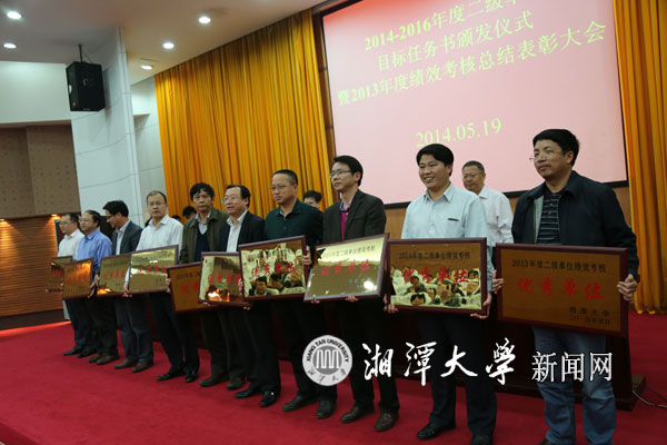 5月19日下午,学校在逸夫楼第一报告厅召开大会,颁发2014-2016年度二级单位目标任务书,总结表彰2013年度绩效考核情况。53个二级单位负责人受领2014至2016年度二级单位目标任务书。公共管理学院等10个单位获“综合考核优秀单位”,21个单位获“综合考核良好单位”。伟德BETVLCTOR获得“综合考核优秀单位”,邓国军院长同其他获得优秀的单位的负责人一起从校领导手中接受奖牌。在3项单项考核中,伟德BETVLCTOR还获得发展速度、贡献率两个单项考核优秀。