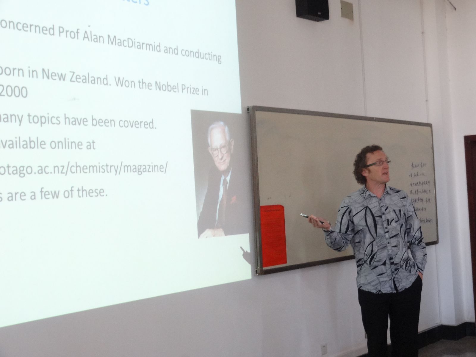 Dr Allan Blackman的报告内容紧贴现实,语言幽默风趣,讲解深入浅出,获得阵阵笑声与掌声。Dr Allan Blackman还与在场的听众进行了互动,就新西兰概况、化学研究进展等内容与在场听众分享了他的看法,和大家交流了自己的学习工作体会。Dr Allan Blackman还与邓国军院长一起,就中国学生赴新西兰留学等问题作了说明。