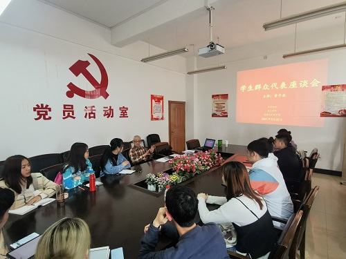 曾子其老师与同学们就“对身边党员表现的评价”、“对学生党建工作的认识”等问题进行了广泛探讨和深入交流。结合与会同学反映的各种问题,曾子其提出目前学生党员存在4个“不够”,即对党的认识不够全面、入党动机不够清晰、党性修养不够自觉、发挥作用不够主动。同时对于座谈会上有入党意愿的同学提出了几点要求,要求同学们能够不断强化党的意识、强化党章意识、强化使命意识、强化能力意识。