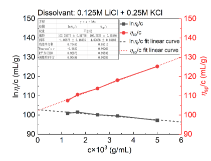 结合本次竞赛要求,参赛队员将物理化学实验过程中遇到的疑难点加以探讨研究,在老师们的指导下不断分析改进。实验通过在毛细管外粘贴刻度标签,用以监控毛细管内残留液体的高度进一步估测毛细管内径,并探讨如何改善聚乙烯醇溶液的粘度曲线线性及斜率。通过混合调节极稀浓度时引起粘度曲线“上弯”和“下弯”两种可溶盐的种类和浓度配比,获得了较好的实验效果(R2> 0.93)。备赛阶段,指导老师与学生一起共同实验,分析数据,拍摄视频,认真研究竞赛内容的每一个细节,力图做到精益求精。