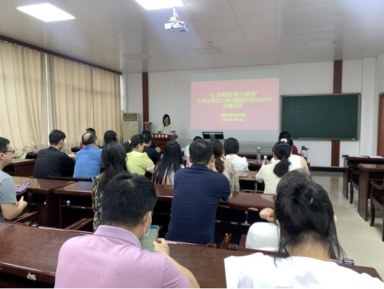 2023年4月21日下午,在化学化工大楼A417会议室召开“心灵相约 助力成长”大学生常见心理问题的识别与应对主题培训,培训由心理健康教育与咨询中心专职教师邓丽华副教授授课,伟德BETVLCTOR全体班主任、全体辅导员和新进专任教师参加,王果副书记主持。