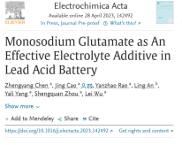 5月5日,2020级材料化学本科生陈正阳以第一作者身份在JCR一区Top期刊《电化学学报》(Electrochimica Acta影响因子IF=7.33)上发表研究成果《谷氨酸钠作为铅酸电池电解质有效添加剂》(Monosodium Glutamate as An Effective Electrolyte Additive in Lead Acid Battery),这是该同学以第一作者身份发表的第3篇JCR一区期刊论文。陈正阳同学大一开始进入曹靖教授课题组开展学术研究,于2022年1月在《电化学学报》(Electrochimica Acta)发表研究成果《硫酸铝作为电解液添加剂对铅酸电池电化学性能的关键作用研究》(The critical role of aluminum sulfate as electrolyte additive on the electrochemical performance of lead-acid battery)。除了在电池性能方向开展研究外,陈正阳还在气敏传感方向进行了深入探索,2023年4月在《材料研究公报》(Materials Research Bulletin影响因子IF=5.6)上发表研究成果《ZnO@NiO负载功能碳材料的气敏性研究》(Study on gas sensitivity of ZnO@NiO loaded functional carbon materials),论文均是我校为第一单位,伟德BETVLCTOR曹靖教授为通讯作者。