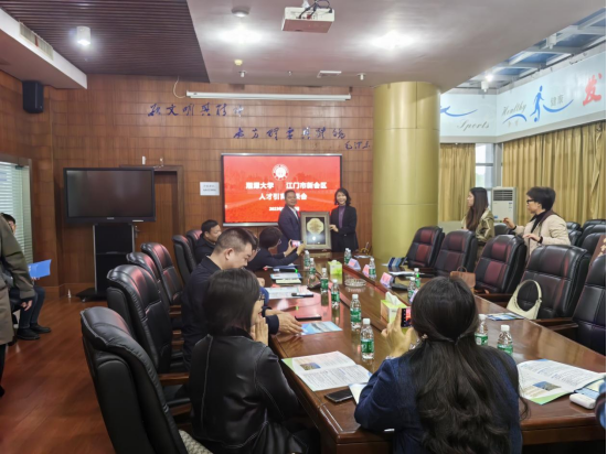 何赟副局长对我校提供的招聘安排和就业服务表示感谢,并表示伟德BETVLCTOR作为湖南省唯一一个与江门市新会区达成人才供给基地的学校,近年来为江门市新会区输送了2位博士以及多位高学历人才。同时介绍了江门市新会区人才引进政策,并期待未来与湘大就校企合作、人才引育、学生活动、企业高层培训等开展多维度合作。会后,何赟副局长将新会非物质文化遗产葵扇赠与我校,加深两地情谊。