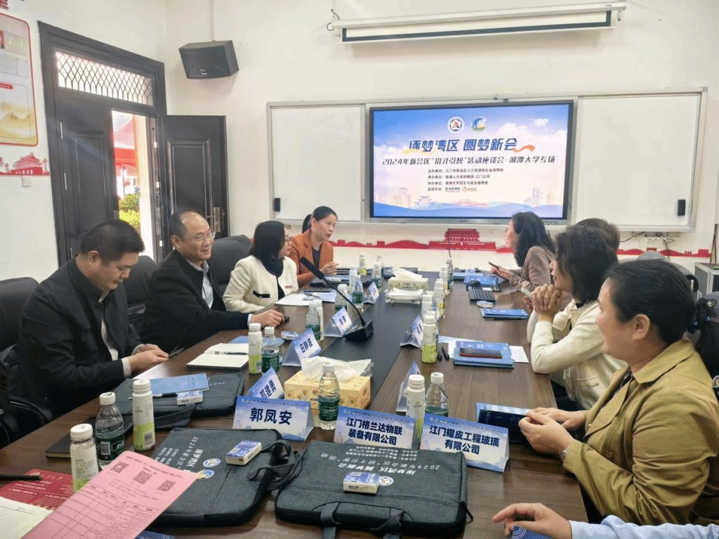 2024年3月28日上午,江门市新会区人力资源和社会保障局副局长何赟带领新会区15家用人单位来校进行“招才引智”活动。
