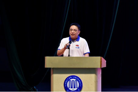 迎新会在庄严的国歌声中拉开帷幕。首先,裴勇院长代表学院致欢迎词。他向566名本科新生和262名研究生新生的到来表示热烈祝贺,并介绍了学院学科优势、科研平台与育人成果,同时结合专业,用三种化学概念——反应物、催化剂、指示剂为喻,勉励新生们树立远大志向,在湘大化院这片广阔的平台上汲取能量,完成知识的“活化”; 找准方向,实现价值的“增值”;坚守初心,彰显品格的“本色”;守正创新,以严谨的态度深耕专业,在学院的平台上实现个人成长与学科发展的同频共振。