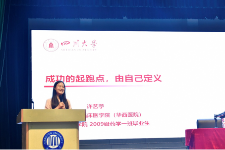 校友许艺苧为新生带来开学“第一课”。她结合自身学习、生活、科研历程,从选择与实现的角度分享成长感悟,为新生未来发展指引方向。许艺苧强调,成功的起点始终由自己决定,关键在于明确目标后做好长远规划——既要制定长期规划,也要搭配阶段目标逐步推进,避免盲目前行。她提及,大学是自我提升的重要平台,新生需主动学习、积极思考,充分利用校内资源拓宽视野,“多出去看看”才能发现更多可能。她鼓励新生:“人生的选择并非一成不变,无需因一时的决定钻牛角尖,应在探索中找到契合自身兴趣与发展的道路,努力不一定会成功,但不努力就一定不会成功,成功不应该被定义,适合自己就是最大的成功。”