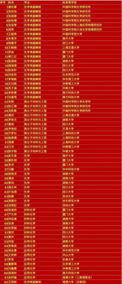 多名优秀学子凭借出色的综合素养,保研至中国科学院化学所、浙江大学、上海交通大学、南开大学、中山大学、四川大学、厦门大学、天津大学、中南大学、湖南大学等国内顶尖学府,在更高的学术平台继续追梦。