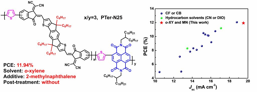 2021年9月,赵斌教授课题组首次以三元共聚策略,成功制备了适宜于非卤溶剂加工的聚合物受体材料,并以非卤溶剂制备了高性能全聚合物太阳能电池器件。其研究成果发表在《Chemical Engineering Journal,2022, 429, 132407》上,刘海路博士为论文的第一作者,赵斌教授为第一通讯作者,游奎一教授和翁超高级实验师为共同通讯作者,伟德BETVLCTOR为第一通讯单位。(全文链接:https://linkinghub.elsevier.com/retrieve/pii/S1385894721039851)。