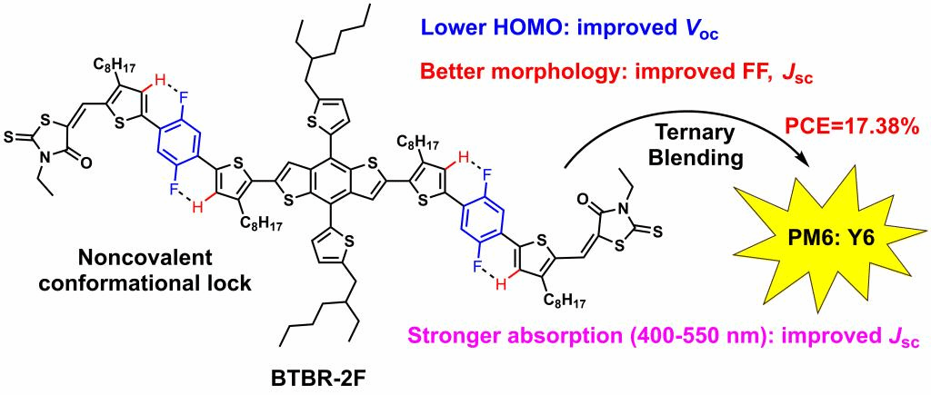 2021年4月,赵斌教授课题组采用非共价键策略,设计并合成了一种宽带隙的小分子给体材料,将其用于制备三元聚合物太阳能电池器件,其光电转换效率达到了17.38%。其研究成果发表在《Journal of Materials Chemistry A, 2021, 9, 11734-11740》上,硕士研究生徐林勇为论文的第一作者,赵斌教授为第一通讯作者,黄美华副教授为共同通讯作者,伟德BETVLCTOR为第一通讯单位。(链接:https://pubs.rsc.org/en/content/articlelanding/2021/TA/D1TA02075G)。