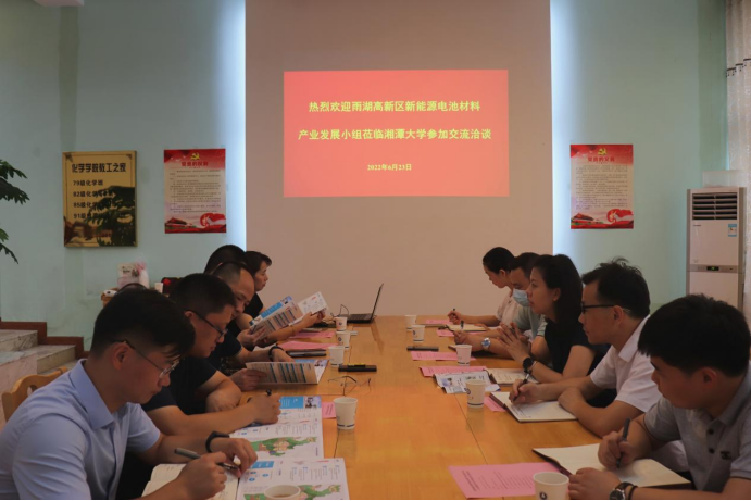 2022年6月23日上午,雨湖高新区新能源电池材料产业发展小组刘芷辰等一行五人到伟德BETVLCTOR参观交流,并举行了座谈会,李涛书记、舒洪波副院长、高平、刘泓等老师出席了此次会议。会前,舒洪波副院长向发展小组简单介绍了伟德BETVLCTOR,伟德BV官网近几年在教学和科研方面的成果。