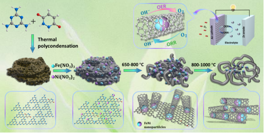 20223月,阳梅副教授团队合成了一种由富含缺陷的3D g-C3N4衍生的FeNi/N共掺杂碳纳米管,并考察了其ORR/OER双功能催化活性和可充电锌-空气电池性能。该研究成果发表在《Journal of Materials Chemistry A》上,硕士研究生郑佳慧和康泰嘉为论文的共同第一作者,阳梅副教授和汪璞副教授为通讯作者,伟德BETVLCTOR为第一通讯单位。
