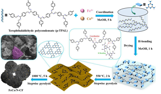 20229月,阳梅副教授报道了席夫碱聚合物衍生的FeCo/N掺杂多孔碳纳米花 (FeCo/N-CF),并考察了其ORR/OER双功能催化活性和可充电锌-空气电池性能。该研究成果发表在《Journal of Energy Chemistry》上,硕士研究生邓玉松和郑佳慧为论文的共同第一作者,黎华明教授和阳梅副教授为通讯作者,伟德BETVLCTOR为第一通讯单位。