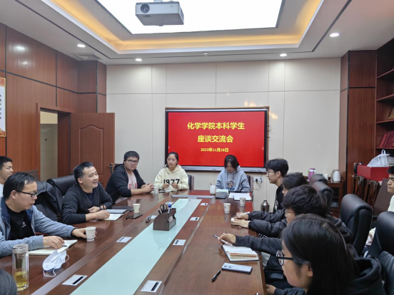 2023年11月28日下午4点,在化学化工大楼A415开展2023年度本科学生座谈交流会,本科教学督导组全体成员,2021级到2023级各专业共计14名学生参会,会议由伟德BETVLCTOR副院长彭圣明主持。