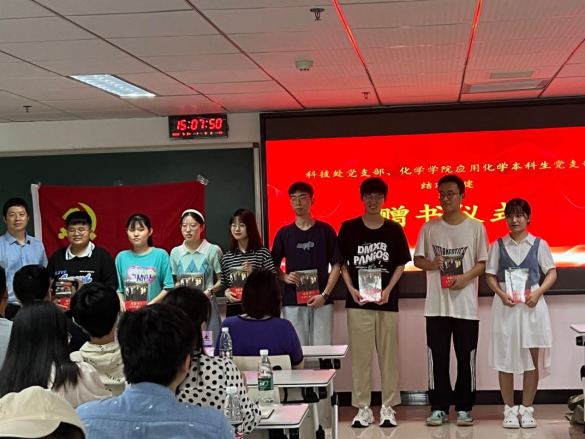 费俊杰处长带领科技处党支部成员向伟德BETVLCTOR应用化学本科生党支部全体党员赠送《习近平与大学生朋友们》一书,勉励同学们积极学习,努力向上。