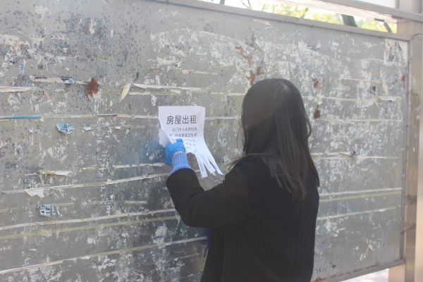 (志愿者们在金翰林开展清理小广告)