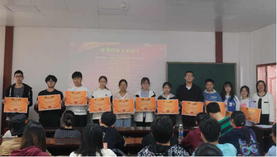 随后,彭楚风老师宣读上学期“早锻炼”优秀集体和优秀个人的表彰决定。2023年上学期“早锻炼”工作成功结束,共有11个班级获得“‘早锻炼’优秀班集体”荣誉称号,共642名同学获得“‘早锻炼’优秀个人”荣誉称号,30名同学获得“‘早锻炼’优秀考勤员”荣誉称号