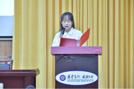 在齐唱团歌过后,成立大会正式开始。王果书记向同学们提出了三点希望,教导着团委学生会所有成员明确自己的目标、以身作则,保持敢闯敢冲的积极心态、在实践中提高自己。同时也对干事们和部长们寄托深切的期望,为之后的工作指明了方向。