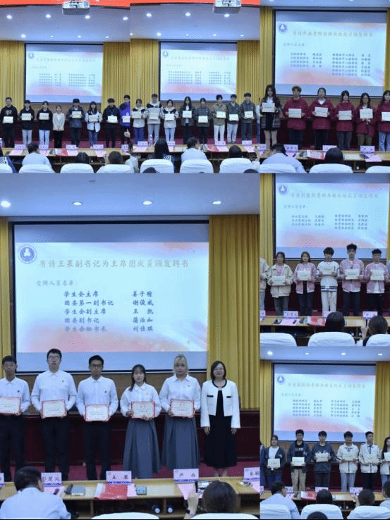 王果书记,彭楚风老师,严画、谢斯烨、朱嗣杰、罗鑫丽老师分别主席团及各部门部长级成员颁发受聘证书。相信学生会的主席和部长们会以认真负责的态度、长远的眼光、宏大的情怀带领团委学生会高效的完成工作。