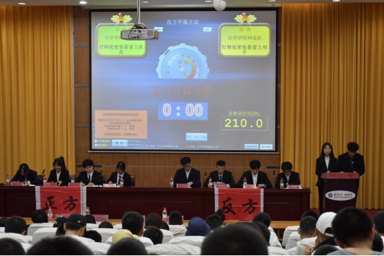 本次参加表演赛的是往届辩论赛的优秀选手。比赛开始后,双方一辩开始运用理论以及经典引出各自的观点,并结合典型事例进行分析总结,双方辩手就辩题展开深层次的辩论。在辩论过程中,辩手们雄辩滔滔,妙语连珠。他们严谨而不失幽默的辩词引得台下同学纷纷叫好。现场精彩纷呈,掌声雷动。