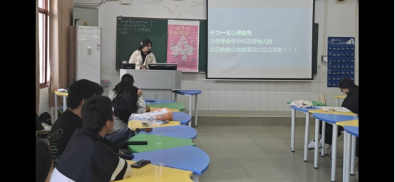 游戏结束后,胡诗怡主任进行心理委员心得的分享,讲述了自己担任心理委员的经验,分享其获评全国百佳心理委员的历程及在心理委员工作上的建议和方法,并列出关于未来工作的计划,帮助心理委员更好更快地适应这项工作。