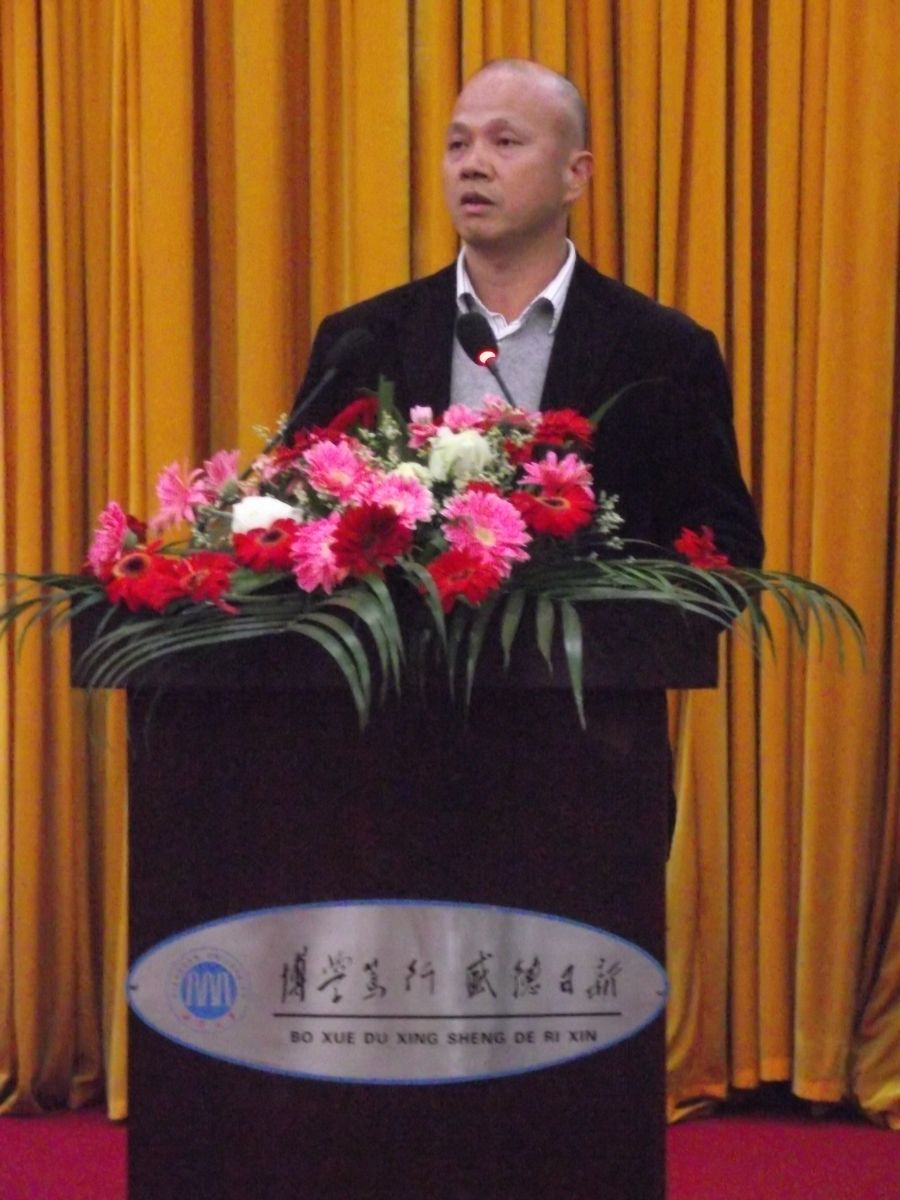 广州合诚化学有限公司邹振彬先生和八一化学百万奖助学金执行理事长曾建祥先生分别讲话。曾建祥在讲话中指出,回到母校倍感温暖,看到朝气蓬勃的学生很受鼓舞,得知曾受奖助的学生取得优异成绩非常高兴,感到设立奖助学金有价值有意义。曾建祥由此阐述,人生就是不断实现追求的过程,实现自己所追求的就是获得了人生的最大价值,希望同学们确立自己的追求,通过自己的努力,实现自己的追求。