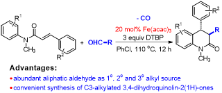 37,Ru-Xin Gao,† Xin-Qi Luan,† Zi-Yi Xie, Luo Yang* and Yong Pei*. “Fe-catalyzed decarbonylative cascade reaction of N-aryl cinnamamides with aliphatic aldehydes to construct 3,4-dihydroquinolin-2(1H)-ones.” Org. Biomol. Chem., 2019, 269-274. (2019-0501)