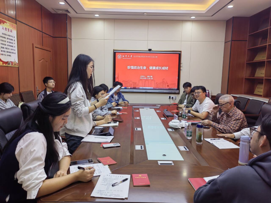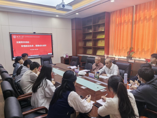 曾老以“珍惜政治生命,健康成长成材”为主题,为全体支部成员带来了一场生动而深刻的分享。他不仅强调了政治生命对于党员的重要性,还亲自带领大家深入学习了党章内容,从党的性质、宗旨到党员的权利与义务。在曾老师的悉心指导下,应用化学本科生党支部的全体成员对党章有了更加全面和深入的理解,纷纷表示将珍惜自己的政治生命,努力在学业和党性修养上取得双丰收,成长为对社会有用的人才。同时,王学业老师也进行了分享,激发了大家对于党员身份的自豪感与责任感,大家承诺在今后的学习工作中,将不断加强党内同志的监督与自我监督,共同推动党支部的工作迈上新台阶。